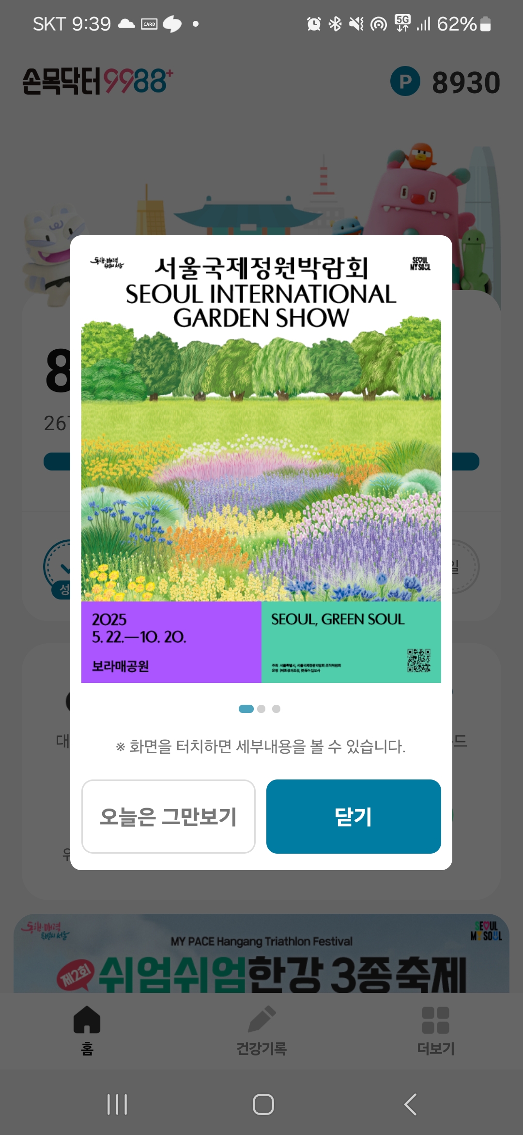 오늘도 어김없이 손목닥터9988 앱을 켰다가